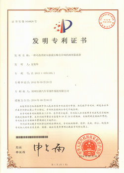 一種可改善轉向器液壓噪音異響的液體穩流器(發明專利) 一種低噪音汽車轉向器轉閥(實用新型)