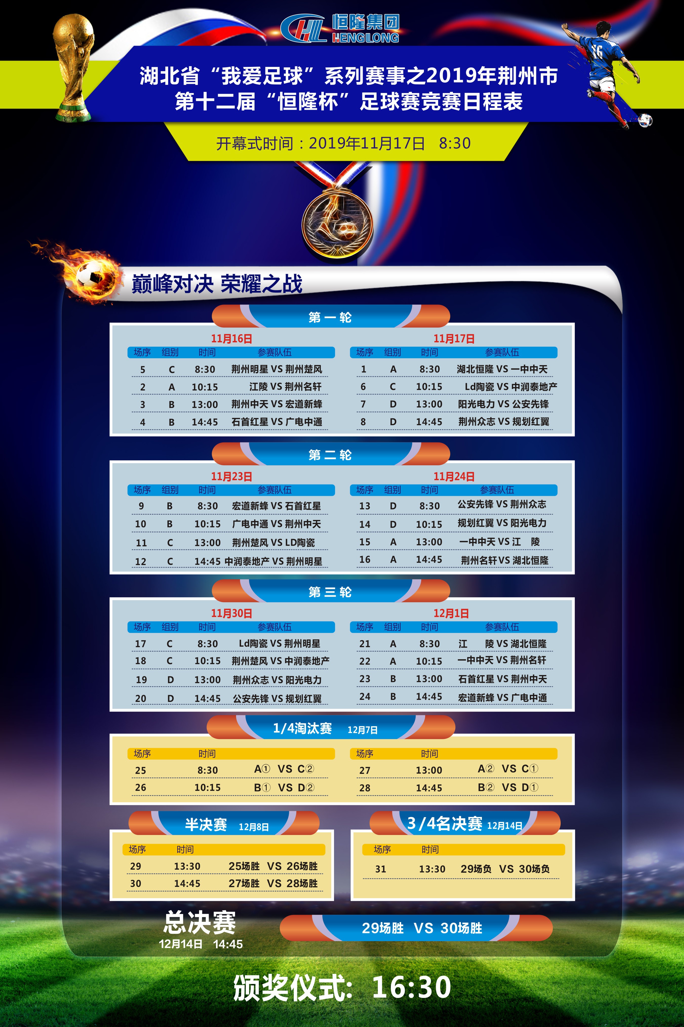 荊州市第十二屆“恒隆杯”足球賽賽事日程